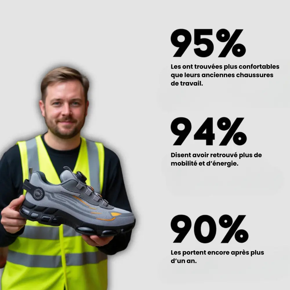 Absolument. Grâce à leur semelle mémoire de forme et à leur design léger et flexible, elles vous accompagnent sans effort lors de longues journées, que ce soit sur sols durs, en atelier ou sur chantier.